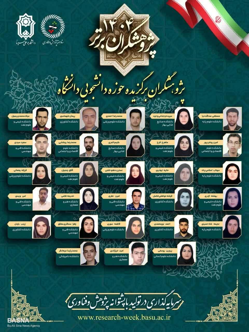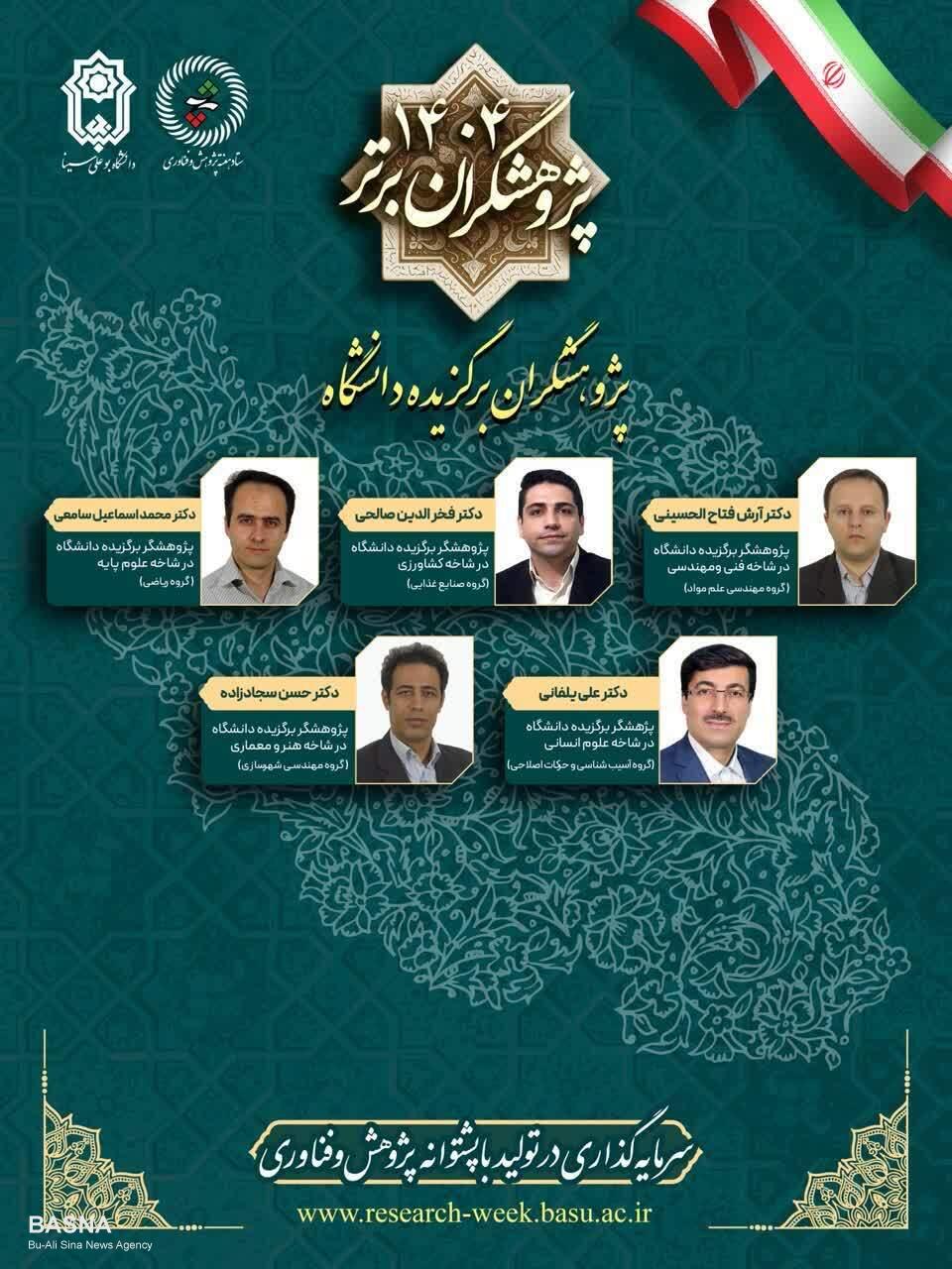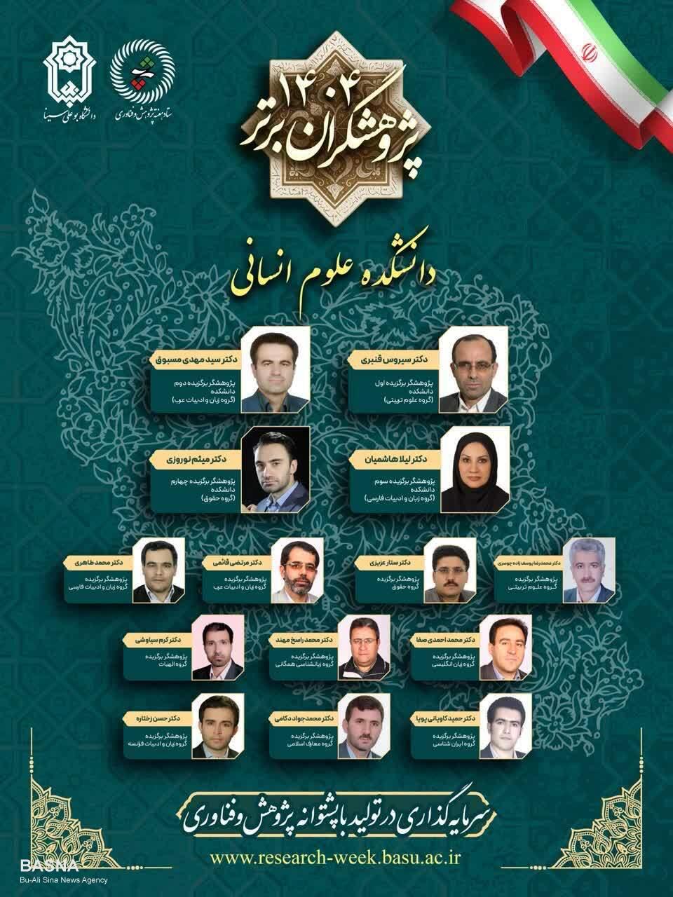 معاونت پژوهش و فناوری دانشگاه بوعلی‌سینا فهرست پژوهشگران برتر در حوزه‌ها و عناوین مختلف را منتشر کرد.