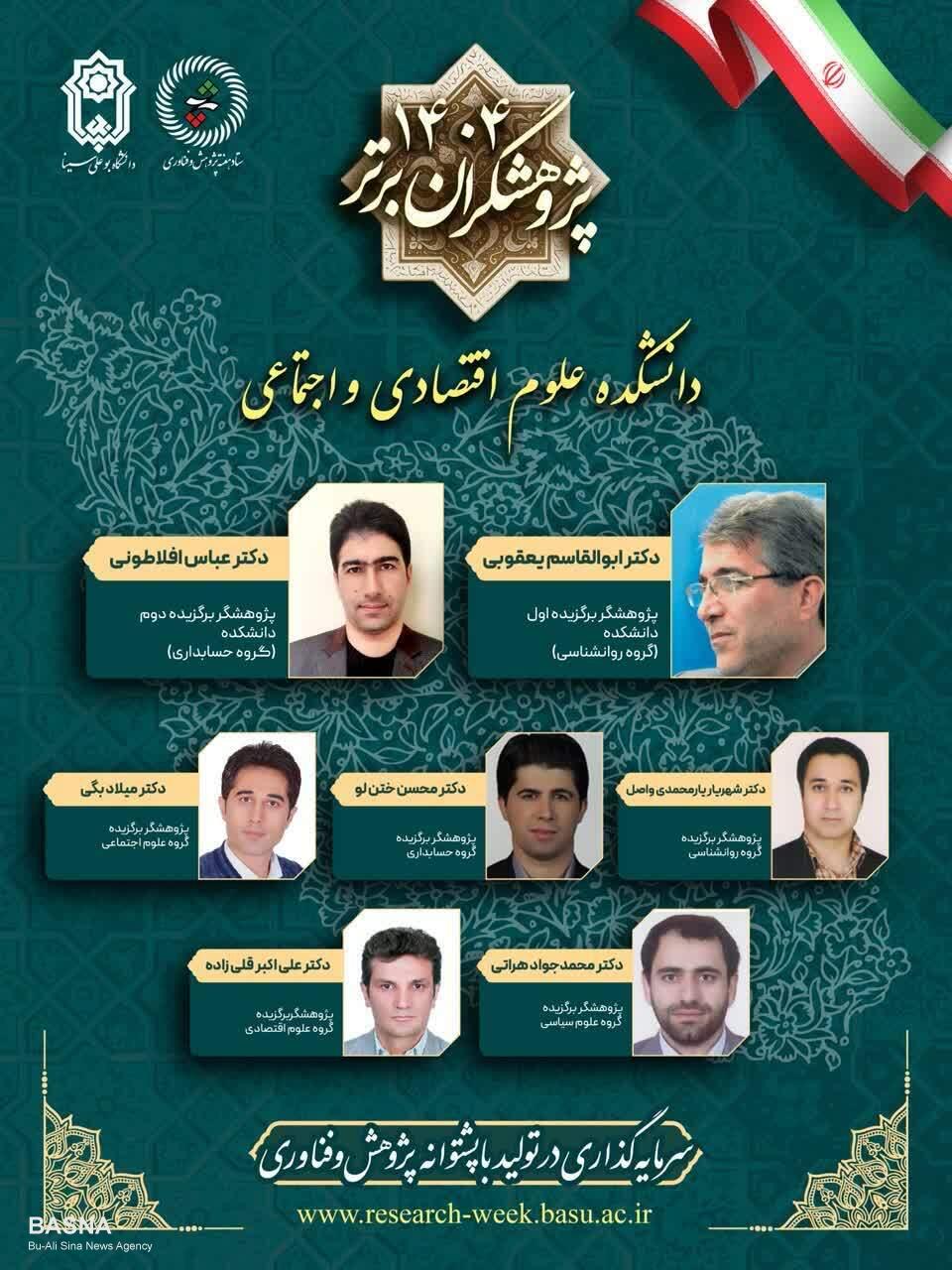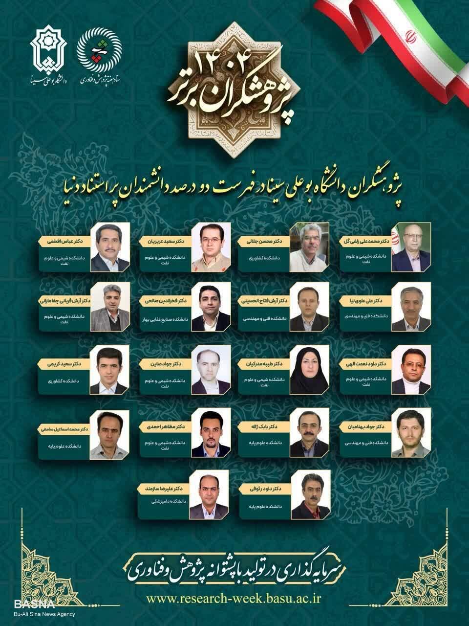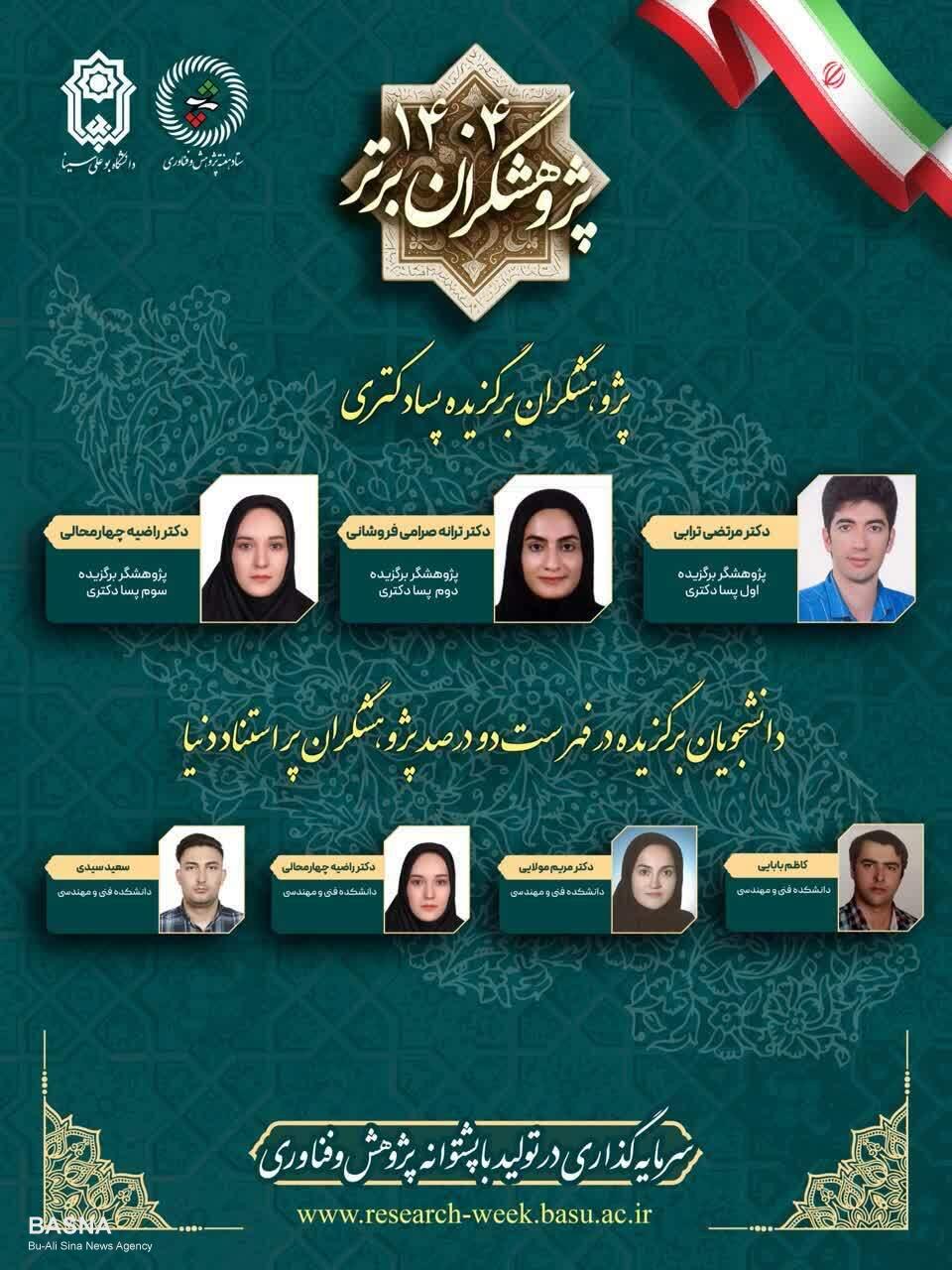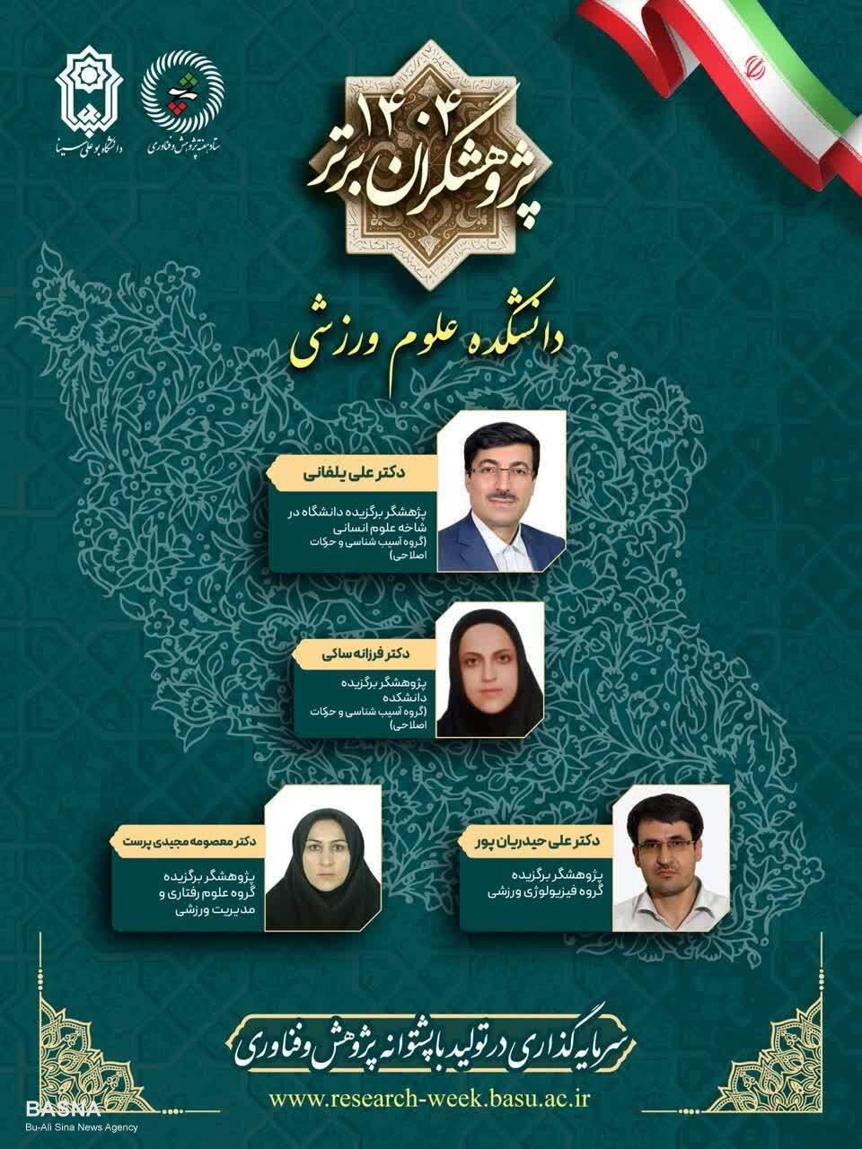 معاونت پژوهش و فناوری دانشگاه بوعلی‌سینا فهرست پژوهشگران برتر در حوزه‌ها و عناوین مختلف را منتشر کرد.