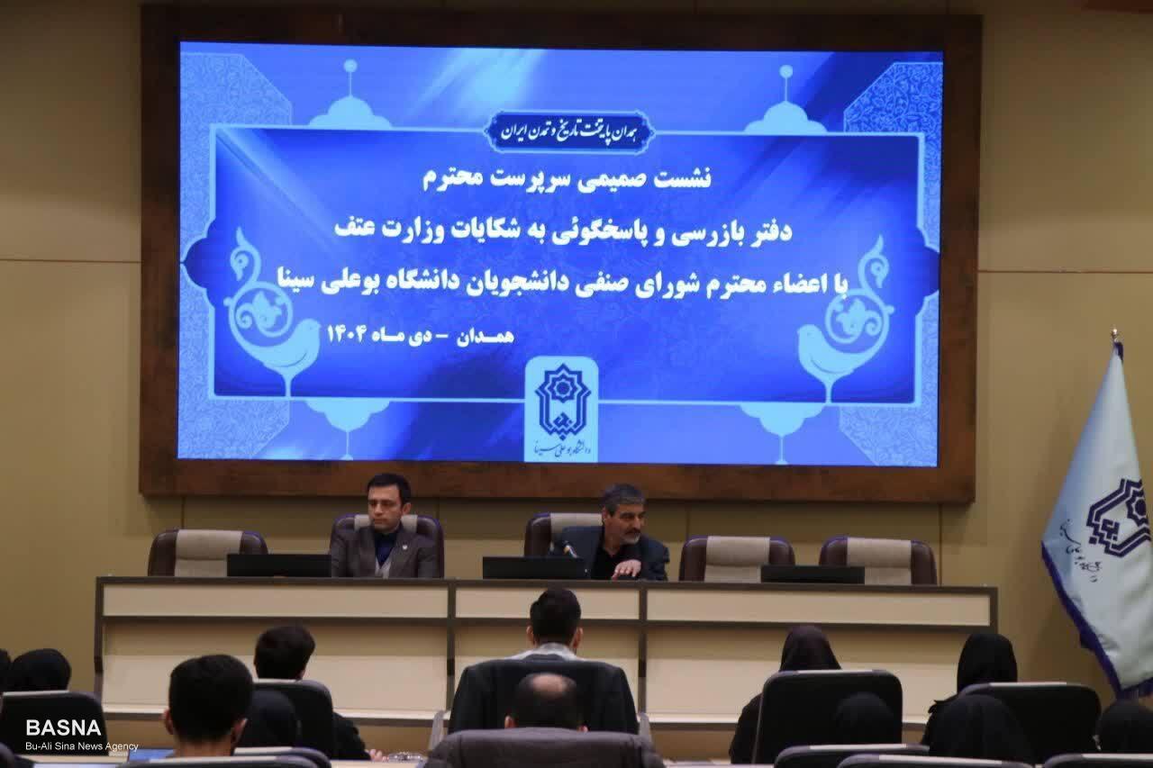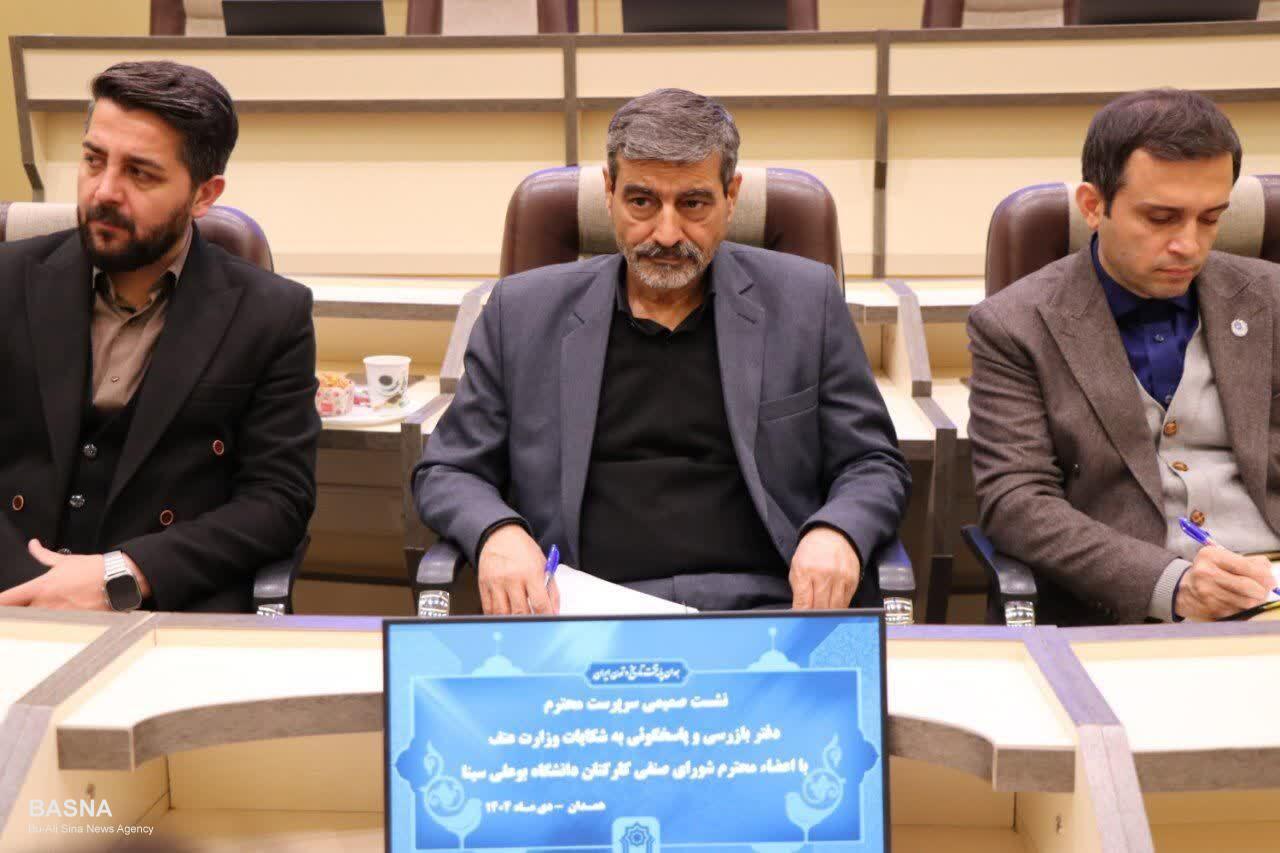 نشست صمیمی سرپرست دفتر بازرسی و پاسخگویی به شکایات وزارت علوم، با اعضای شورای صنفی کارکنان و دانشجویان دانشگاه بوعلی‌سینا + گزارش تصویری